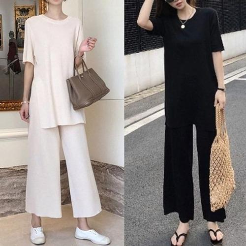[유야]여성 쿨 스판 세미크롭 반팔티 와이드팬츠 세트 -FPST0387- 여름