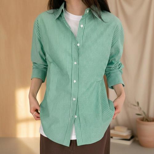 [신상오픈런]여성용 루즈핏 스트라이프 카라 셔츠 데일리 캐주얼 스타일
