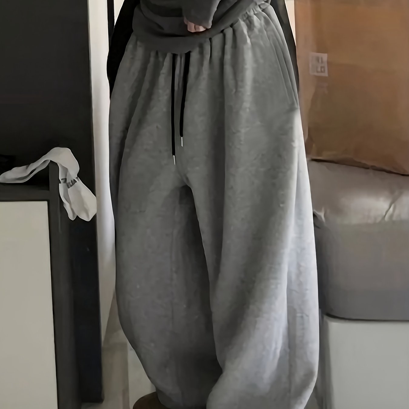 TEMU 여성용 편안한 루즈핏 드로스트링 스웨트팬츠 - 캐주얼 와이드 레그 팬츠, 탄력 있는 허리밴드와 스트레치 소재, 가을/겨울용|스포츠|냉장고바지|바지