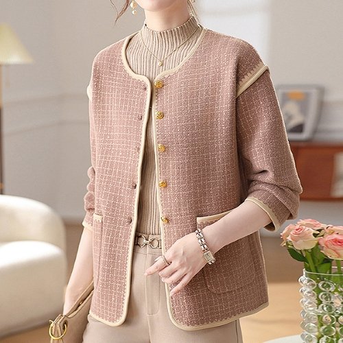 2024 트위드 한국 하이 퀄리티 짧은 트위드 재킷, 싱글 브레스트 레이디 블레이저, 올매치 캐주얼 코트 상의