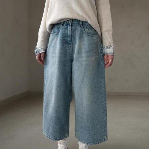 [다잇템]여성 FW 칠부 데님팬츠 워싱 와이드핏 반바지