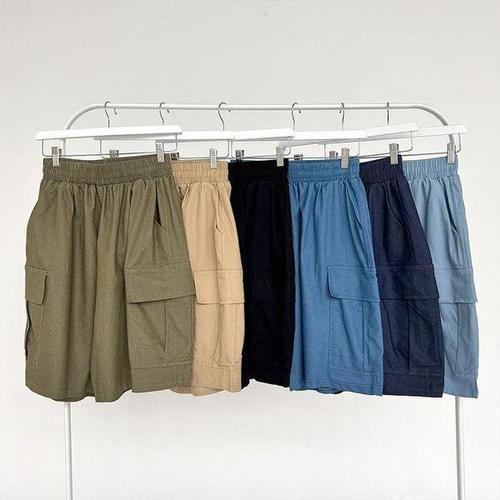 [셀러허브_여성트랜드패션]ONM 허리 밴딩 카고 반바지 여성 데일리 포켓 스판