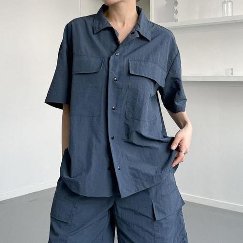[다잇템]여자 시밀러 카고반바지 반소매 박시셔츠 세트 (15084898A)