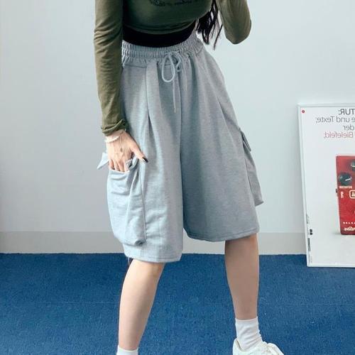 [다잇템]여자 카고팬츠 블록코어룩 큰주머니 반바지 (16007979A)