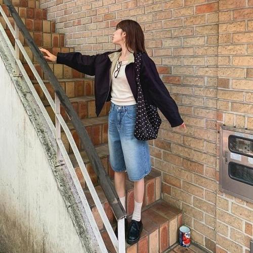 [다잇템][다잇템] 여자 넓은 FW 코튼 워싱 버뮤다데님 박스 청반바지_22720508_588872