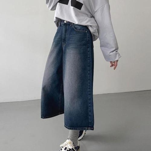[옷자락]여자 7부 버뮤다데님 와이드핏 워싱 면 가을 청반바지