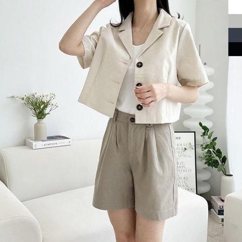 [에이치플러스몰]여성 베이직 캐주얼 반밴딩 코튼 치노 핀턱 반바지