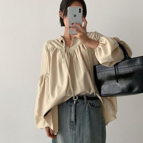 [다잇템][다잇템] 여자 들러리룩 아방핏 잔주름 벌룬 끈 큰사이즈 블라우스_22735751_588872