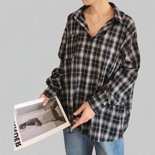 [다잇템][다잇템] 여성 격자 롱슬리브 주머니 환절기 빅사이즈 큰사이즈 셔츠_22736464_588872