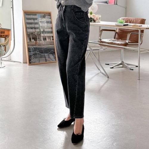 [다잇템]여자 면원단 박시 검정데님 봄팬츠 청바지