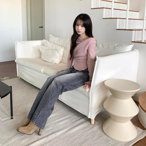 [옷자락]여자 일자핏 FW 편한 검정데님 밑단컷팅 데님팬츠