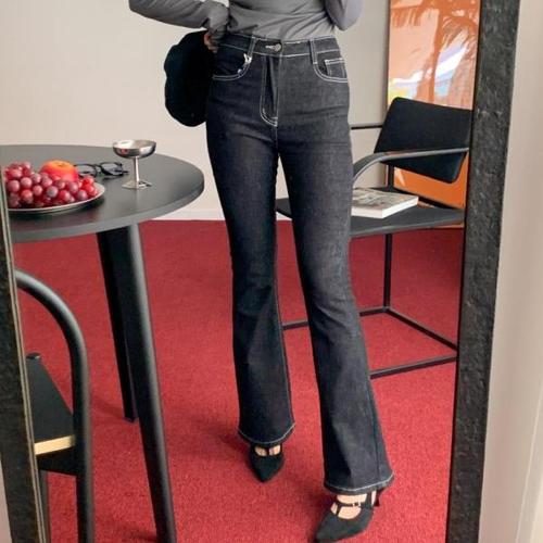 [옷자락] 여자 검정진 부츠컷 겨울 세미슬림 청바지