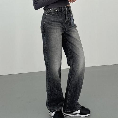 [다잇템_패션]여자 SS 캣워싱 검정데님 일자핏 데님팬츠