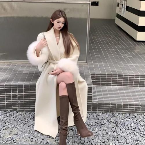 앙고라 알파카 울 더블 롱 핸드메이드 코트 겨울 룩