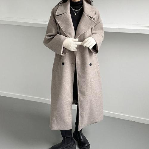 ANYOU 여성 겨울 캐주얼 로브벨트 모직 롱코트 루즈핏 데이트룩 오피스룩 하객룩 코트 아우터