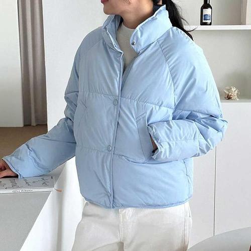 BIKASU 여성 캐주얼 노카라 경량 숏패딩 오리털 빅사이즈 패딩 겨울 점퍼 아우터