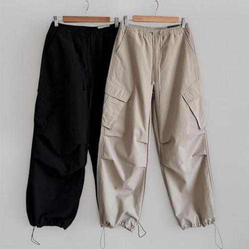 [신상오픈런]여성 아메카지 스타일 카고 파라슈트 스트링 기모 바지