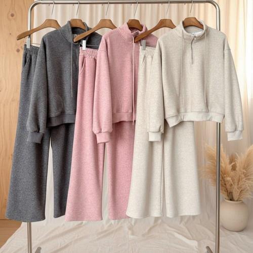 [옷자락]여성용 부드러운 기모 반집업 트레이닝 세트