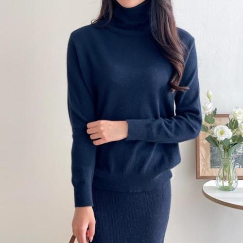 [신상오픈런]여자 소프트 목폴라티 견장 롱슬리브 무지 긴팔 니트 (42357147)