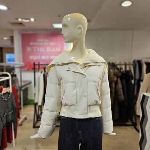 [더람]WSH4HC81_니트카라배색 이중집업 숏 덕다운점퍼