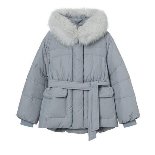 [올리브데올리브]OP5WMB01_폭스퍼장식 허리스트링 덕다운점퍼