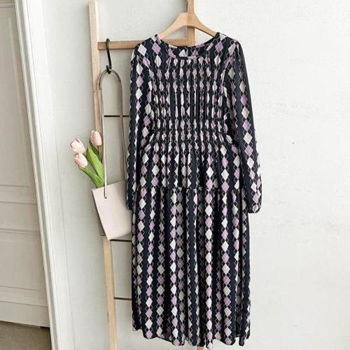 [신상오픈런]|KDO3F13|샤쥬보 잔골지 라운지웨어 가을 여성 플리츠 원피스 롱슬리브 뒷 긴_18171021_597559