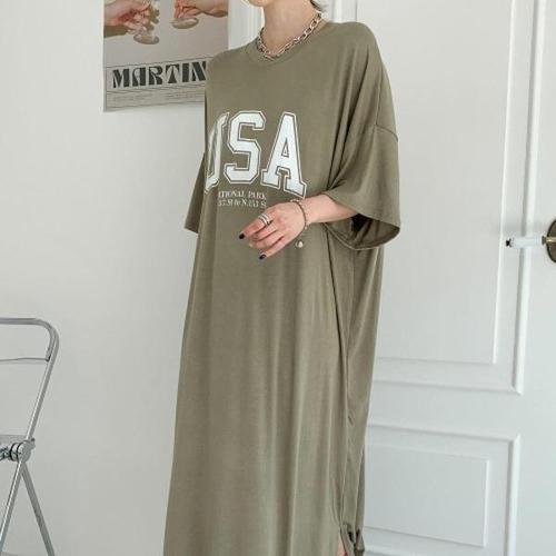 [신상오픈런]|KSO4824|든말레 긴원피스 라운지웨어 썸머 여성 오버핏 부들 레터링_18169278_597559