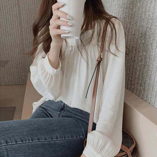 NB3083 여성 러블리 얇은 셔링 긴팔 블라우스