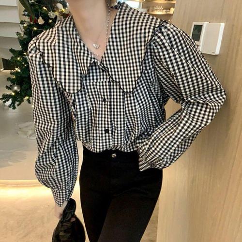 [셀럽하우스]여자 UPBL6158 러블리 스타일 빅카라 체크 블라우스 고품질 루
