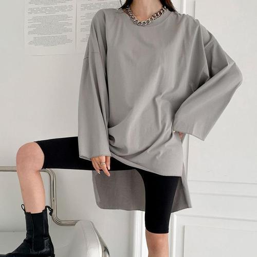 [옷자락]여자 레이어드티 힙커버 박시 루즈핏 반팔 이너 티셔츠
