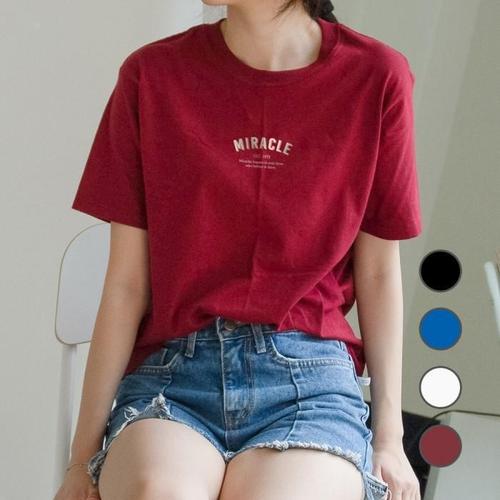 [험블][험블] 레이어드티 미라클 레터링 라운드넥 여름여성반팔티 (6898801A)