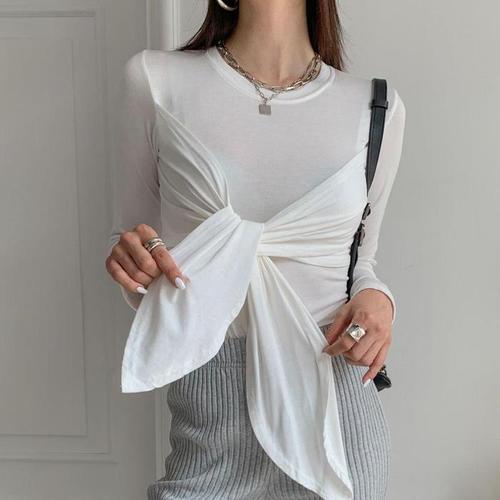 INSZEN 여성 2in1 레이어드 슬림핏 긴소매 탑 라운드 이너 티셔츠 IZ-814
