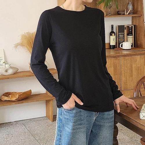 데일리앤 릴리 날라리 물결 면 모달 스판 여성 기본 이너 레이어드 슬림핏 쫀쫀 긴팔 티셔츠