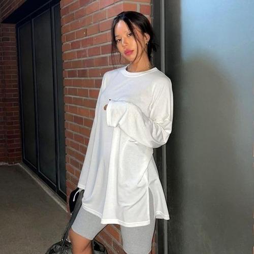 [다잇템][다잇템] 여자 사이드슬릿 빅사이즈 무채색 레이어드티 라운드 티셔츠_22666699_588872