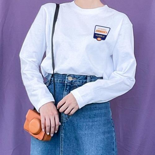 [다잇템]여자 레이어드티 언발 박시핏 패치 티셔츠 (14668695A)