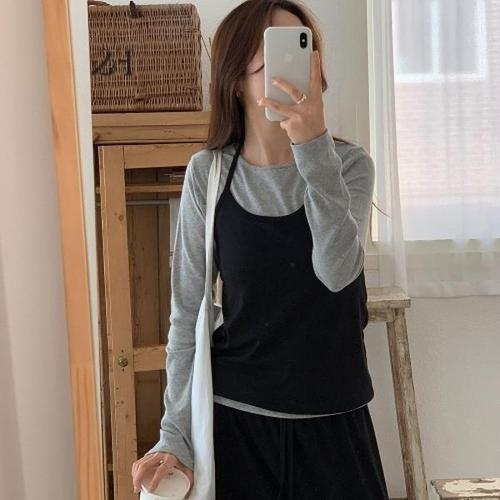 옷자락 / 여자 굴림 언발 라운드 이너 레이어드티 긴팔 티셔츠