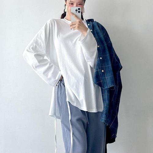 [옷자락] 여자 트임 레이어드티 슬릿 빅사이즈 라본 면 티셔츠