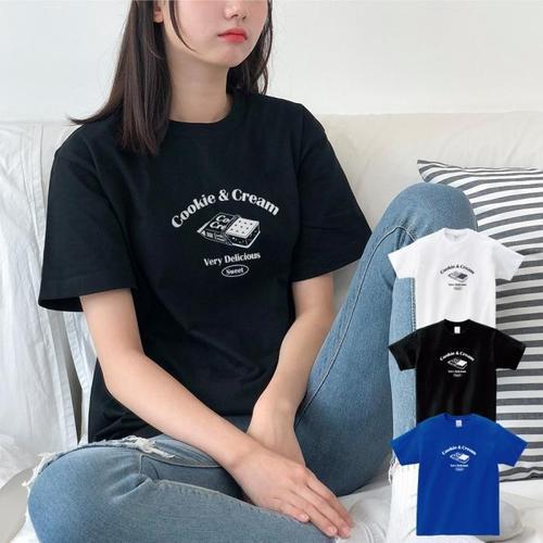 [험블][험블] 감성 프린팅 레이어드티 여자 홈웨어 반팔티 (8746582A)