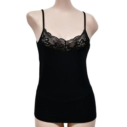 [옷자락]여자 레이스캐미 브이넥 검정색 끈런닝 티셔츠