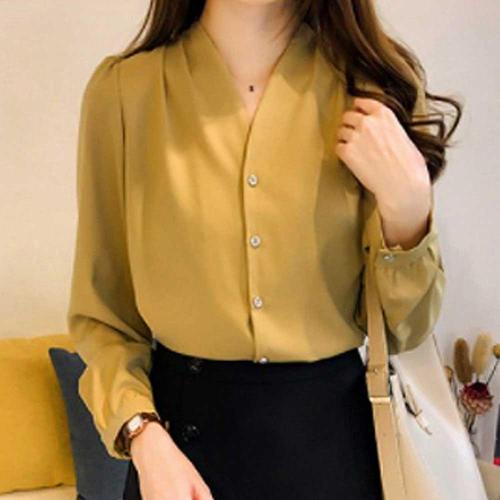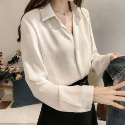 [셀럽하우스]여자 NNER6351 20대 면접 코디 쉬폰 브이넥 블라우스