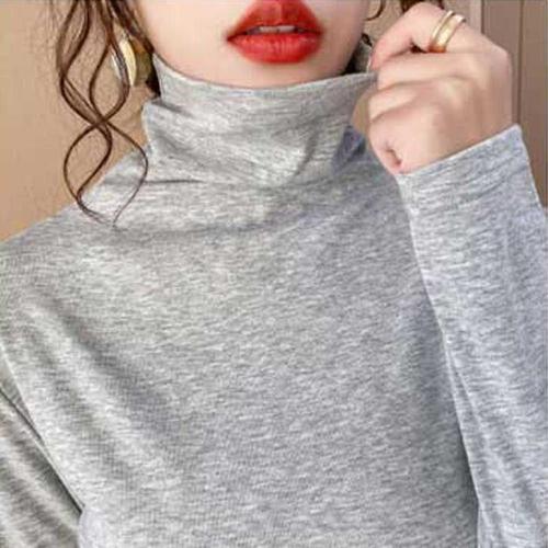 패션 목폴라 목티 캐쥬얼티 티 반목 면 여성 겨울