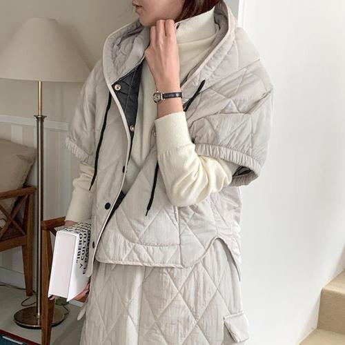 [미라클세븐]여성 후드 스트링 퀄팅 패딩 점퍼 반팔 무지 코트