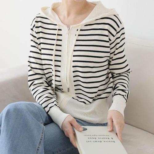 [다잇템]여자 스트라이프집업 봄아우터 후디 점퍼 (12533850A)