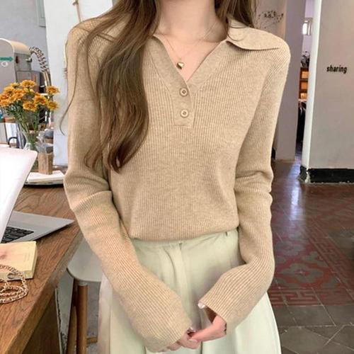 [에이치플러스몰]루즈핏 티셔츠 여자니트티 브이넥 라운드 스웨터 봄