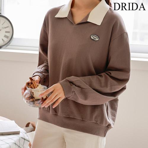 드리다 봄 가을 카라 배색 루즈핏 빅사이즈 맨투맨 티셔츠 캐주얼 등원 모임 미시 엄마옷