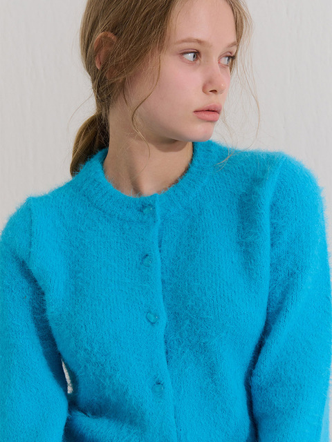 [카미노] 소프트 퍼 라운드 니트 가디건 블루