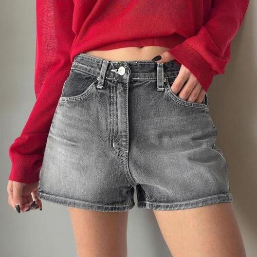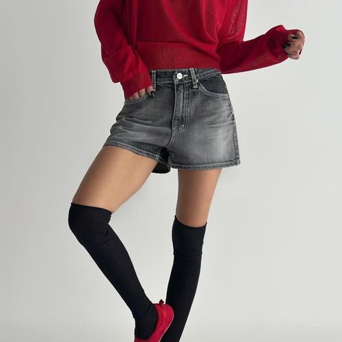 여성 하이웨스트 워싱 연청 데님 숏 팬츠
