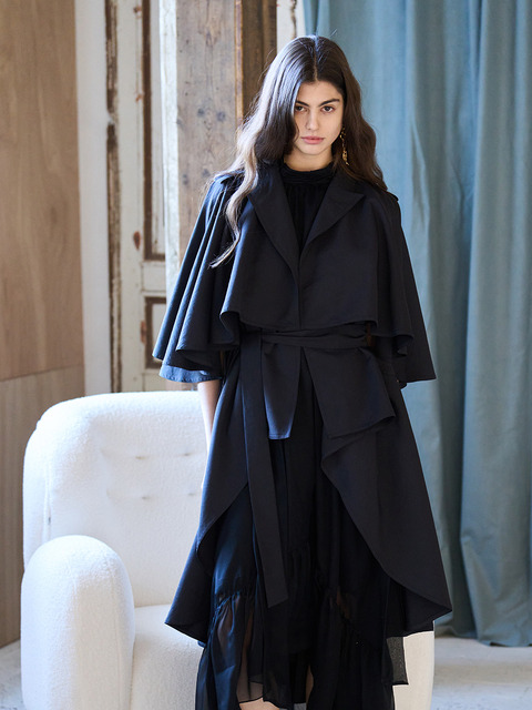 [까이에] [까이에]루즈핏 컷아웃 케이프 슬리브 언밸런스 트렌치코트_블랙