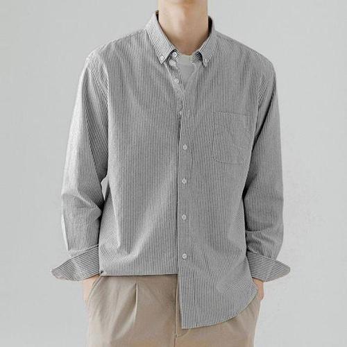 [셀러허브_여성트랜드패션]스트라이프 긴팔 셔츠 남성 와이셔츠 카라