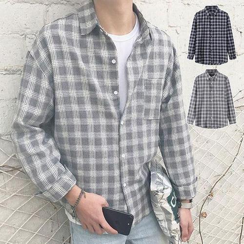 [셀러허브_여성트랜드패션]체크 남성와이셔츠 셔츠 남자 루즈핏 긴팔 남방